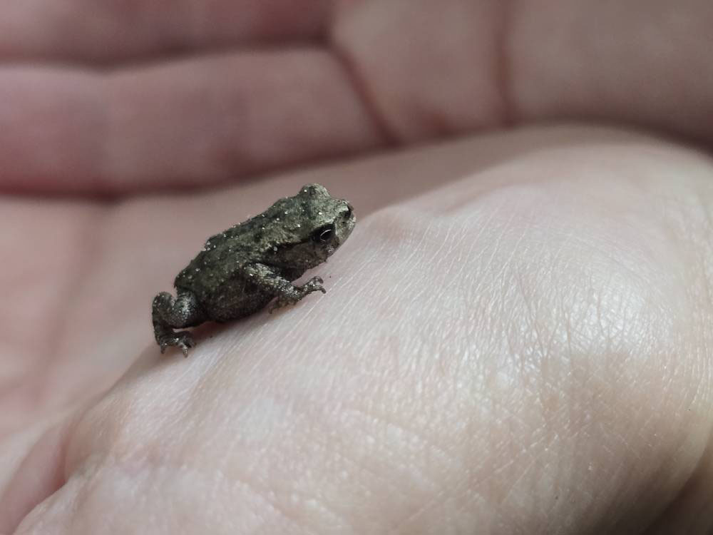 Am Ufer entdeckten wir zahlreiche winzige Kröten, die gerade auf dem Weg ins Wasser waren. Manche davon waren nicht