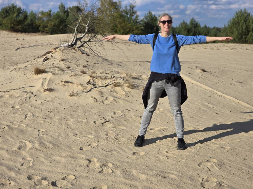 weit von den Wegen entfernen wegen übriggebliebener Blindgänger) zu der schönen Sanddüne, die wir besteigen