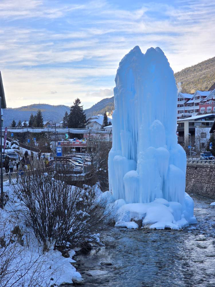 Allerdings waren hierfür extra Eisskulpturen in der Stadt aufgebaut worden. Neben einer Skulptur von den olypischen Ringen gab