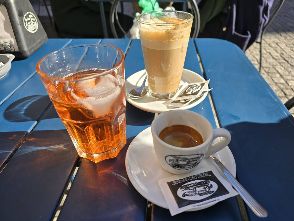 einer Bar auf einem kleinen malerischen Platz nieder und taten es den Italienern gleich. Neben Latte macchiato und Espresso genossen