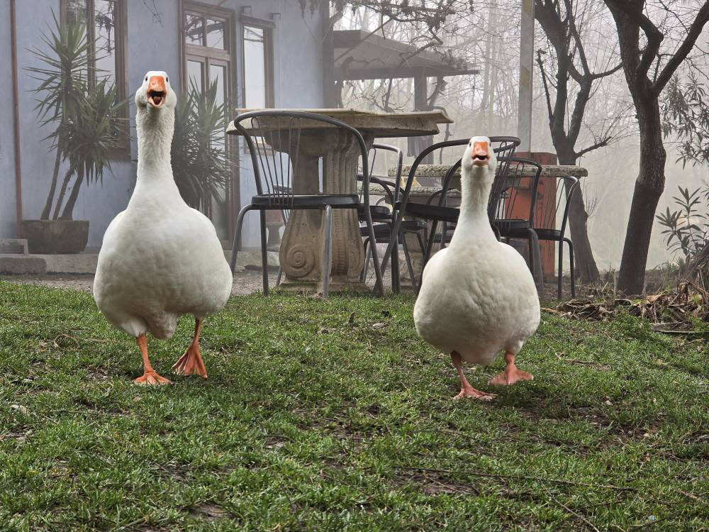 Suche nach Sonnenschein. Doch zuvor mussten wir uns noch von den Tieren - Gänse, Hunde und Esel - verabschieden. Dann ging es