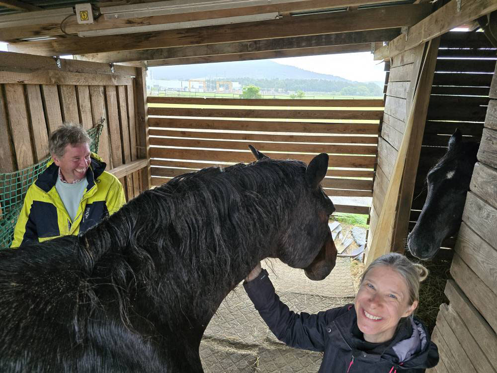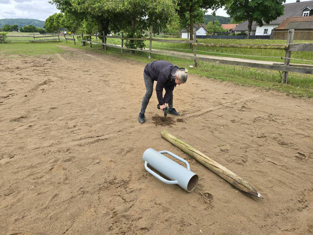Dennoch hatten wir freiwillig angeboten, auf dem Reiterhof mitzuhelfen, wenn wir da sind. Also wieder rein in die Arbeitssachen. Das Tor