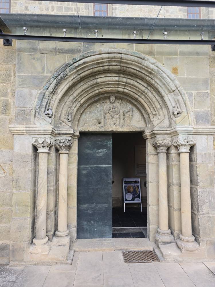 Frisch gestärkt ging es erneut zur Basilika St. Wiperti. Die Wipertikirche mit ihrer über 1.000 Jahre alten Krypta ist, auch wenn sie etwas abseits liegt, einen Besuch wert. Auf dem Rückweg Richtung Altstadt wollten wir noch dem Münzenberg einen Besuch abstatten. Allerdings mussten der noch etwas warten. Obwohl wir gerade erst gefrühstückt hatten, konnten wir an den verführerischen Düften aus der Bäckerei Gelbke nicht vorbei. Wir mussten eine kurze Pause mit Kaffee und Kuchen einlegen und kauften am Ende noch etwas Wegzehrung und Nußbrot. Erst dann konnten wir zum Münzenberg hinaufsteigen und durch die malerischen Gassen schlendern. Zum Abschluss in Quedlinburg ging es auf den Schlossberg. Leider konnte das Schloss wegen umfangreicher Sanierungsmaßnahmen nicht besichtigt werden, so blieb uns nur ein Blick auf die imposante Fassade.
