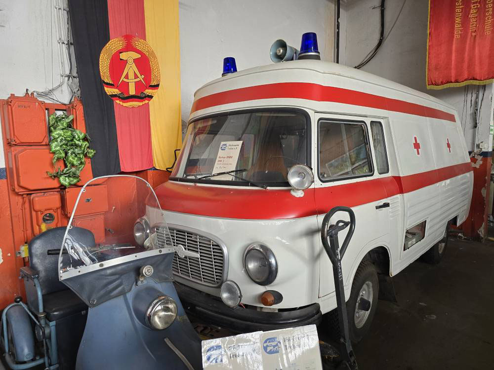 Werkshallen verschiedene DDR-Autos - von Trabant bis Polizei-Barkas und IFA-Feuerwehren - sowie zahlreiche Elektrogeräte und