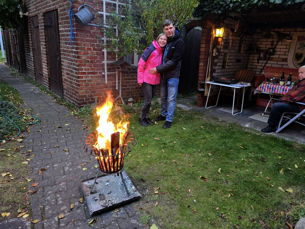 Wir nutzten das schöne Wetter aus, um unseren 2. Abschied zu begehen. Franks Eltern schlugen vor, die Feuerschale