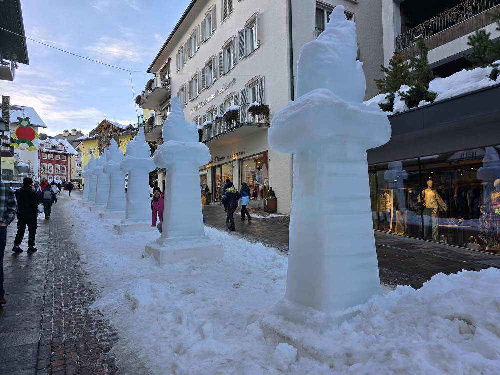 Allerdings waren hierfür extra Eisskulpturen in der Stadt aufgebaut worden. Neben einer Skulptur von den olypischen Ringen gab