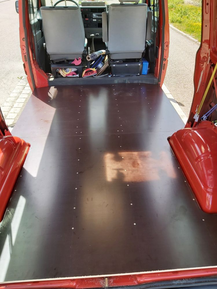 Thema Ladungssicherung - musste der Bodenaufbau ohnehin um eine Bodenplatte ergänzt werden.