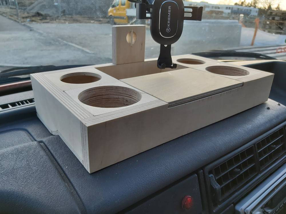 Daher entschloß ich mich, als erstes eine Ablage inkl. Becherhalter für das Armaturenbrett zu bauen.