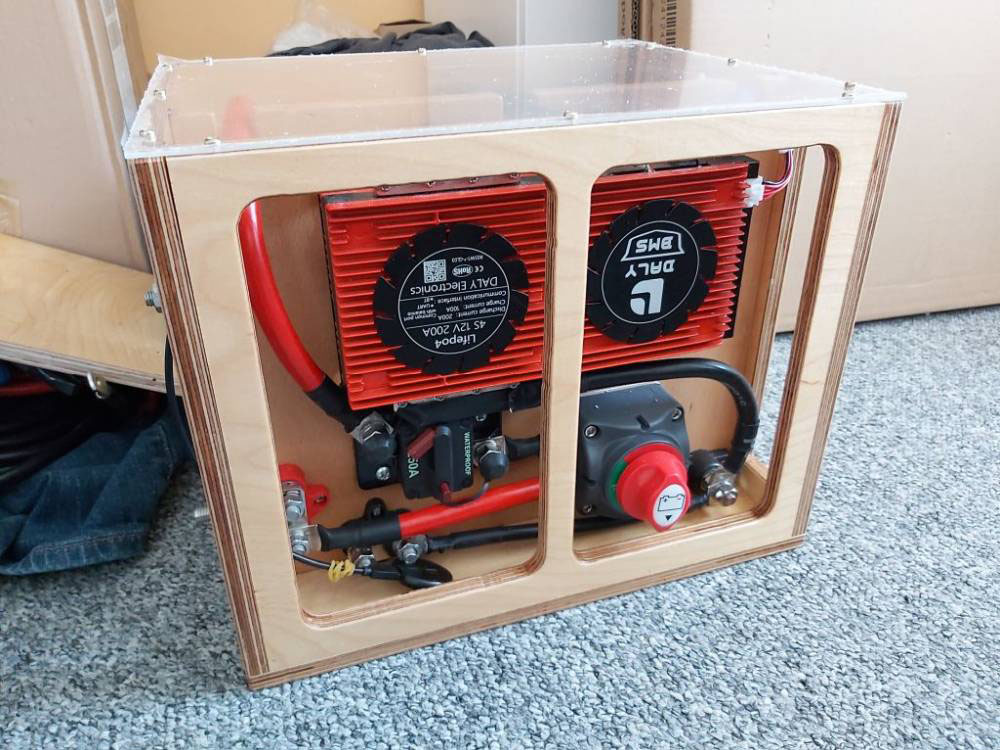 Batterieschalter inkl. der Verkabelung montiert. Dann folgte die Verkabelung der Zellen und der Anschluss des BMS. Am Ende hatte