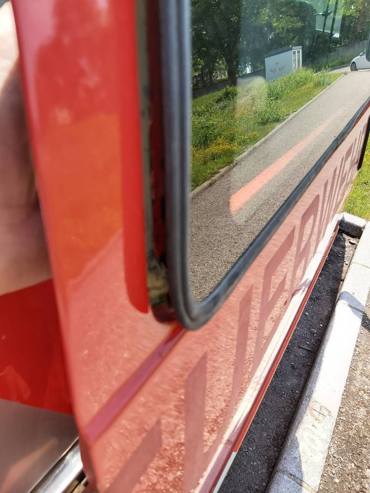 mit der Karosserie gelöst und die Scheibe drohte herauszufallen. Hier half kein Silikon mehr. Hier musste ein Profi ran.