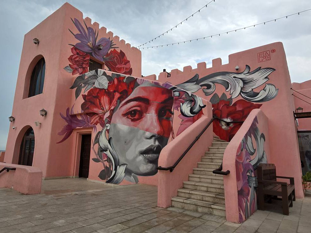 Vor dem Ablegen ging es noch einmal in den Mina District, den vollständig neu gestalteten alten Hafen. Hier reihen sich Souvenierläden, Restaurants und Bars aneinander. Besonders sehenswert ist der Fischmarkt, welcher sich in einer malerischen Halle befindet. Wegen Ramadan hatten zwar fast alle Läden geschlossen, dafür war der Bereich nicht von Touristen überlaufen. So konnten wir die Straßen entlang schlendern und die Wandbilder bewundern.