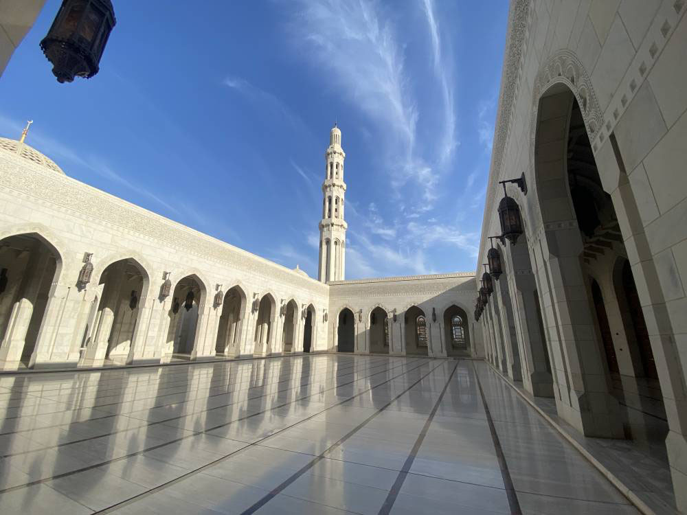 Direkt am Schiff stiegen wir in den auf uns wartenden Bus. Dann ging es als erstes zur Großen Sultan-Qabus-Moschee. Sie ist eine der wenigen Moscheen mit 5 Minaretten, die die 5 Säulen des Islam symbolisieren. Der kleinere Gebetsraum für die Frauen ist mit einem schlichten Teppich ausgelegt. Nur die Holzdecke mit den Kronleuchtern sowie die handgeschnitzten Türen sind beeindruckend. Anders der Gebetsraum für die Männer. Hier liegt der zweitgrößte handgeknüpfte Teppich der Welt. Der Raum wird von einer reichverzierten Kuppel überspannt, in welcher ein riesiger Kronleuchter hängt.