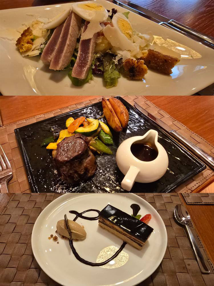 Zum Abendessen waren wir wieder zurück an unserer Unterkunft und suchten uns dort einen netten Platz zum Essen, was wir nicht